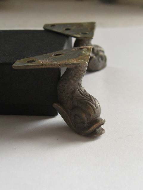 F5-35 A small elegant Georgian or Regency era solid brass dolphin foot, which would raise a box by 1″ or 25mm approximately.