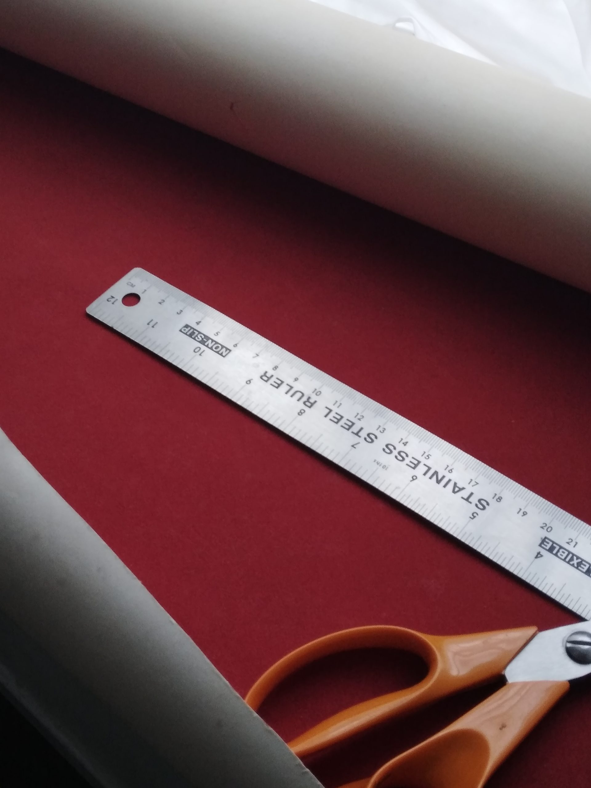 Victorian wallpaper, flocked and a rich scarlet red in colour.