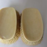 A pair of Victorian ivory hair brushes. The ivory is pegged. The brushes measure 5″ long x 2 3/4″ wide. Both brushes have small chips at one end to the ivory. Good bristles. SOLD.